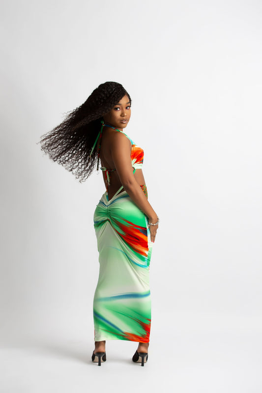 SAMARA HALTER RUCHED MAXI IN EMERALD PRINT