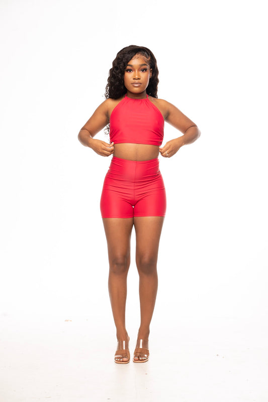 SAMARA HALTER RUCHED SHORTS IN PINK